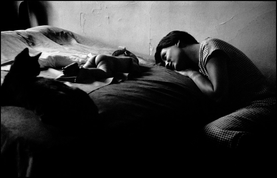 どうです?この愛情の可視化というかなんというか…。なんだか涙が出てしまいそう。写っているのは、アーウィットさんの奥様、お子さん、そして猫、と彼の愛する家族達です。こういった“愛情のやりとり”は世界中いろいろなところで、今この瞬間もものすごい数行われていると思うのですが、それをこんなにもぴったりとおさめてある写真はなかなかそうそう無いのではないでしょうか。今日初めてオリジナル・プリントを見ましたが、静かで暖かい室内(多分)、肌の感じややわらかな眼差しが、想像していた以上に心にグッとくる(語彙力…)1枚です。