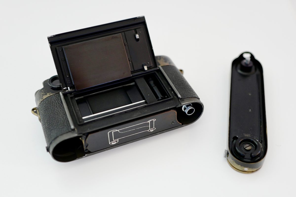 ブラックペイントにも特徴があって比較的早い番号(30番くらいまでかな)は、黒のラッカー塗装が薄くペイントにこんもりとした印象はないです。なので、トッププレートの刻印やライカビットの刻印は細くシャープに見えます。こんもりとしたM4のようなペイントだとフェイクですね。グッタペルカのシボの具合も微妙に異なります。ファインダーにも特徴がありフェイクとの見分け方の指標になります。