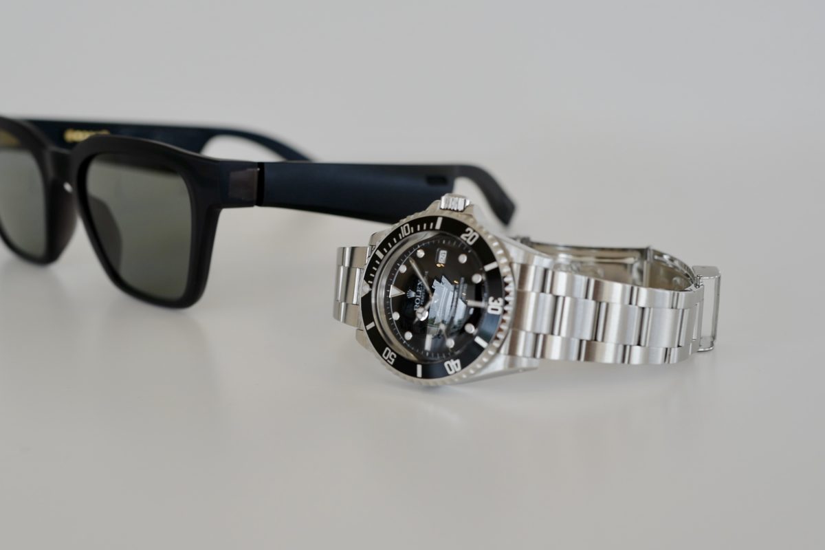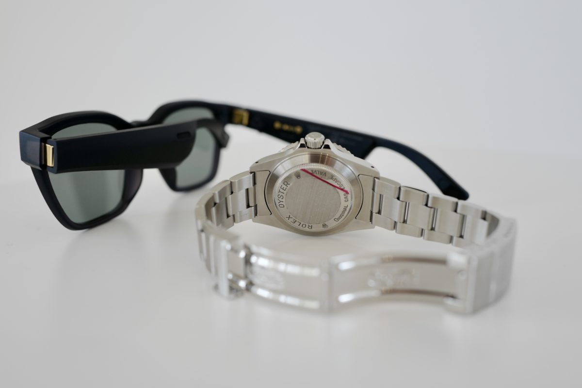 簡単にケース径と風防の厚みや強度だけの計算では出来ませんでした。結構な力作なわけです。でも、ヤバイくらいにカッコイイ。古そうに見えるけど、新しいみたいな、このバランス感がちょうど良い。一緒に写っているBOSE FRAMEもそう。デザイン的にはレイバンのウェイファーラーによく似てるんだけどBluetoothで音楽が楽しめる新しさ。