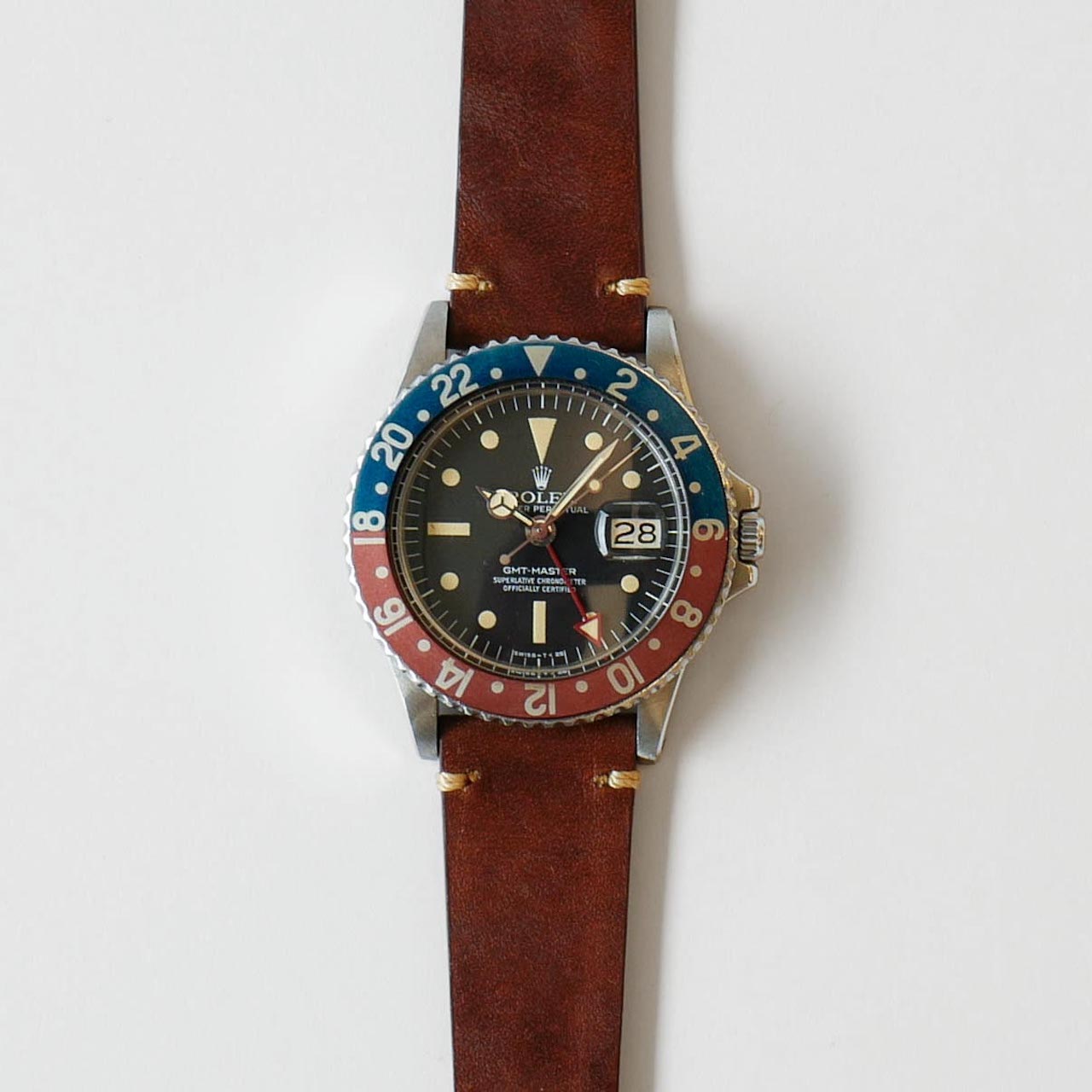 ロレックス・スポーツモデル、デイデイト専用に製作したビンテージ感のあるレザーストラップ。裏面に水・汗に強い素材を用い、耐久性が向上。 Vintage ROLEXに最適な1本。カラーバリエーションも増え、ファッションに合わせて付け替えもgood。