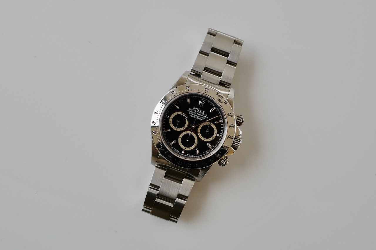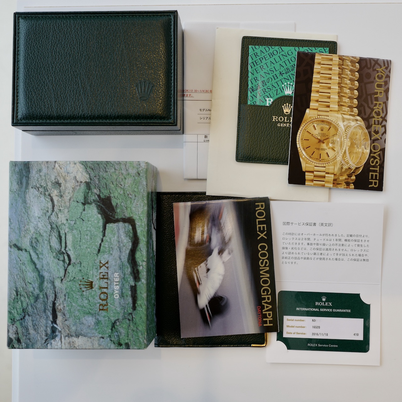 現行モデル116500LNの以上な値上がりで、逆にこの辺りの16520ゼニスムーブメント、逆6、シングルバックルあたりを押さえて置くのが賢明かと思われます。