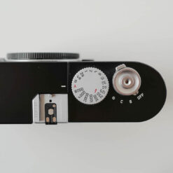 特徴としては、レリーズボタンやシャッターダイヤル等のパーツがシルバークロームでその他のトップやアンダープレートがブラックペイントで仕上げられています。そして正面のライカロゴがブラックとなります。