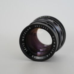 ライカを代表するレンズ、ズミクロン。当時からライカのスタンダードでありながら、割とカチッとした写りは定評があります。固定銅鏡になってから2世代目のピントフォーカスリングが太くなったタイプのブラックペイント。プロカメラマンに好まれた事もあり、あまり程度の良いものが残っていないのも事実。多くは後塗りだったりしますので、ご注意ください。