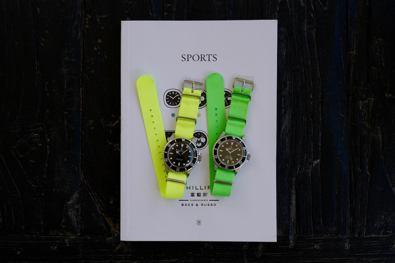 ロレックススポーツモデルにジャストフィットするように、ネオンカラーのストラップ2色をご用意しました。