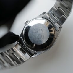 今回のエアキングref.5500は、ドミノピザの創業者でオーナーだったトム・モナハンが週に20,000ドル以上売り上げる店の店長に贈答用に作ったものと言われています。なので、必ず裏蓋に刻印が2列あります。ref.5500に関して言えば、文字盤6時位置の垂直にレイアウトされたドミノピザのロゴマークと裏蓋のT・S・M(下段・オーナーのイニシャル)の刻印がマストです。上段は贈った店長のイニシャルだと思われます。