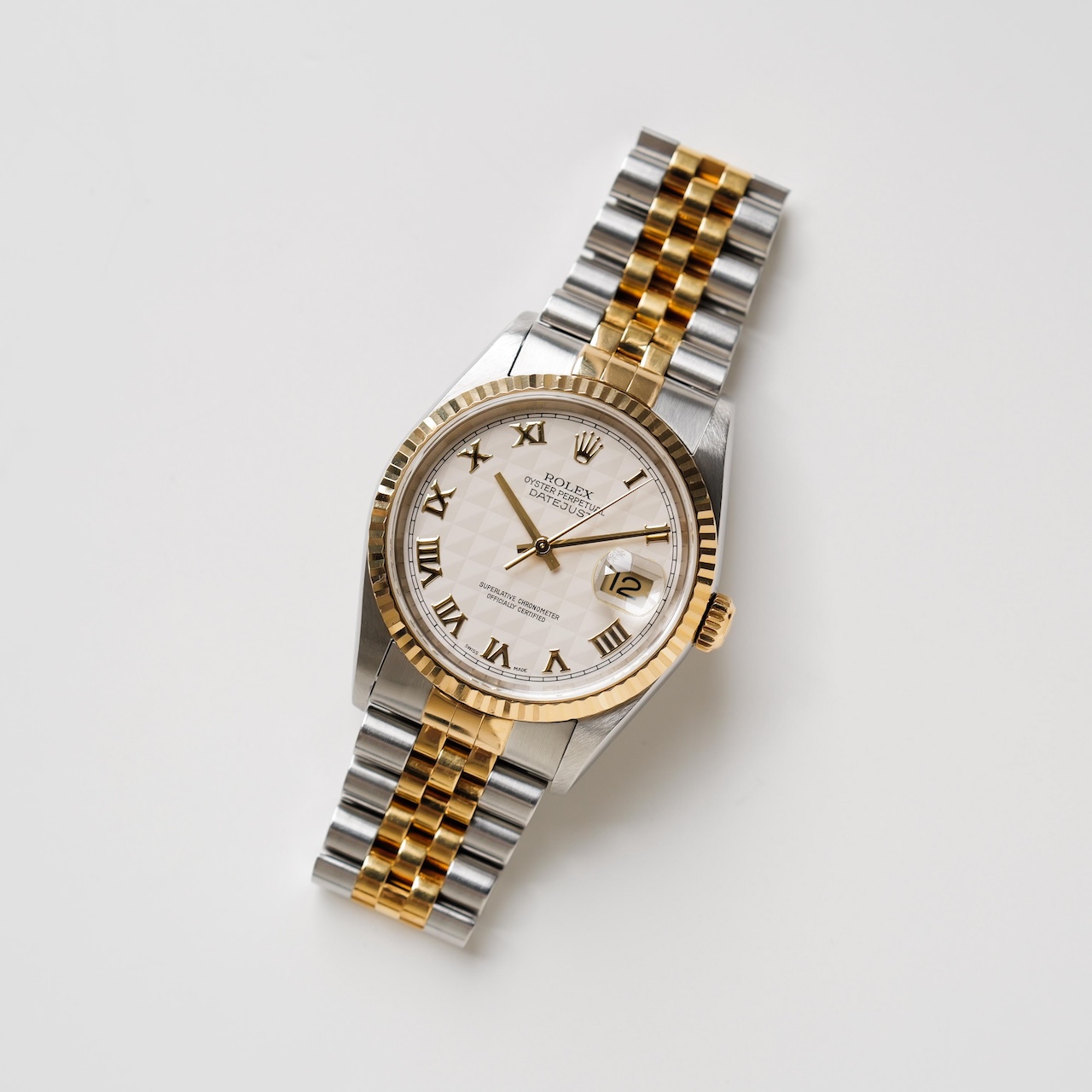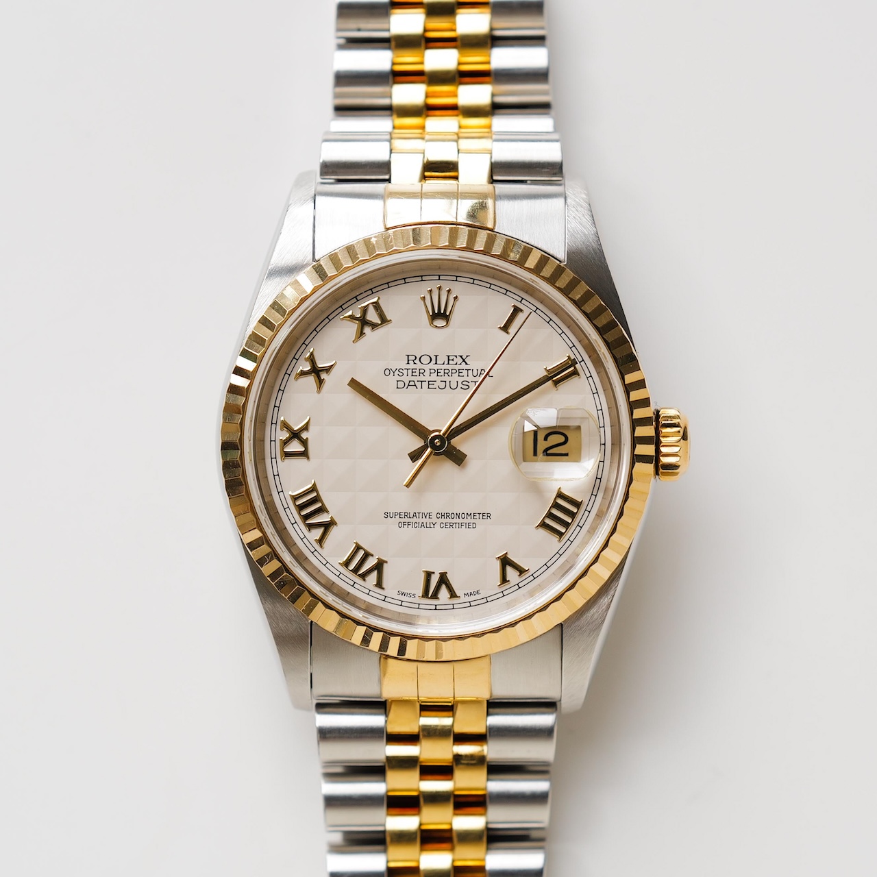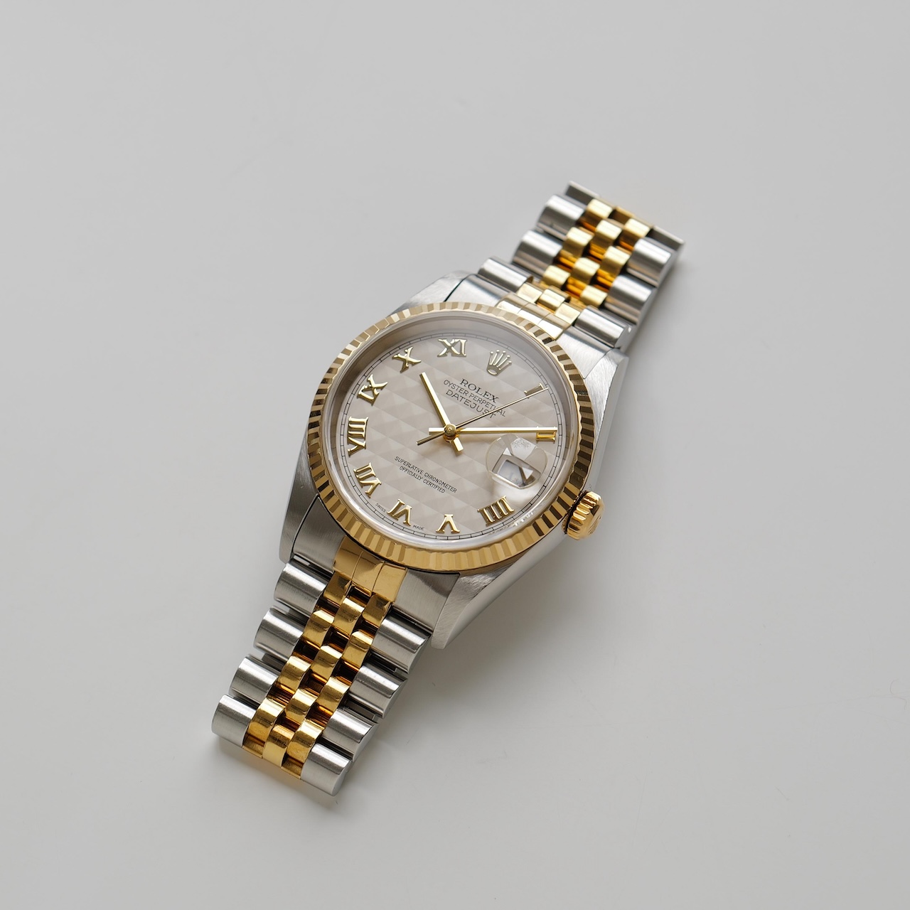【価格見直し】ロレックス/デイトジャスト16233/K番/アイボリーピラミッド/ローマン数字/保証書付きフルセット/ROLEX DATE-JUST Ref.16233 “IVORY PYRAMID” 2001y Full Set
