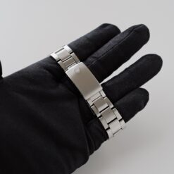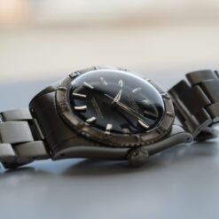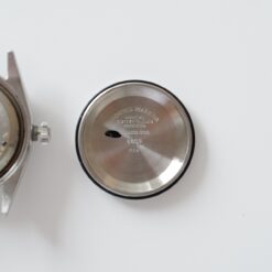 彫り込んだようなフォントとゴールドレターが特徴のロレックス純正の文字盤です。こちらも60年代にオーナーが何らかの理由でブラックダイヤルに交換したものと思われます。本来はオンリーSWISS表記の筈ですしインデックスの形状も異なります。