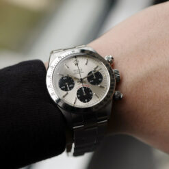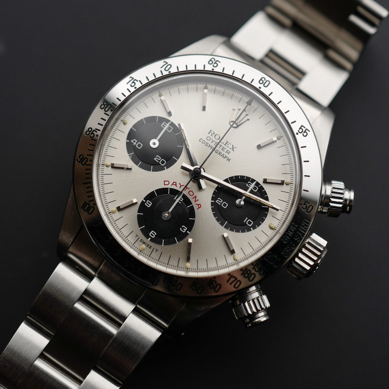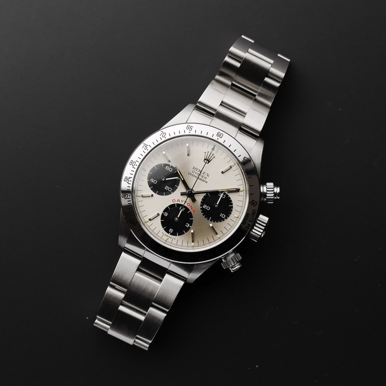 ビッグレッドデイトナ1984-85年モデルの入荷。人気のシルバーダイヤルに赤でDAYTONAの文字が6時位置に大きくプリントされた美しいダイヤル。オリジナルの夜光落ちもなく汚れもありません。針はオリジナルトリチウムで夜光に僅かに黒いシミがありますが、気になるレベルではありません。