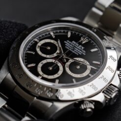 DAYTONA16520P Black dial 2000y. This is the final P-numbered Daytona equipped with the Zenith El Primero. In the same year, the reference changed to 116520, and it became Rolex’s own movement. Nowadays, the Daytona 16520 equipped with El Primero is called Zenith Daytona overseas and has joined the ranks of vintage watches.