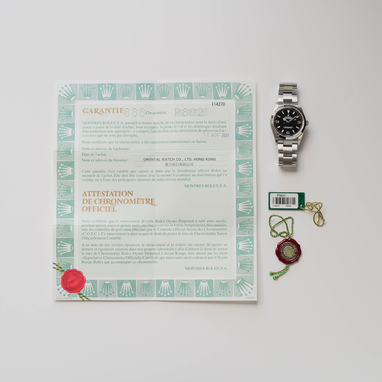 ロレックス/エクスプローラー1/114270/P番/裏蓋シール有り/保証書付き/ROLEX EXPLORER1 Ref.114270 P Serial 2000y with Paper