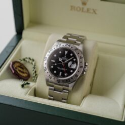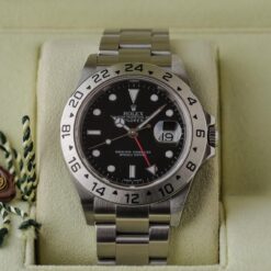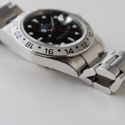 We now have a non-polished Explorer 2/16570/Z in stock. It is the first black dial in a long time. The “hairline-finished” stainless steel bezel has a robustness, or rather a ruggedness like a lump of metal, that you don’t find in other models. The back cover seal is still in place, and the case, bracelet, and of course the bezel are barely used with hairline remaining. It does not come with a warranty card, but the serial number and date of purchase are shown on the warranty claim postcard.