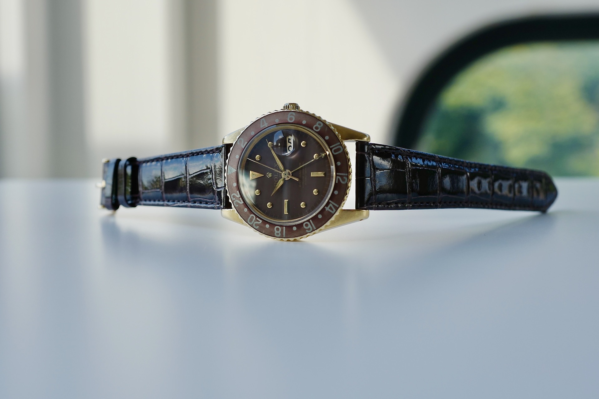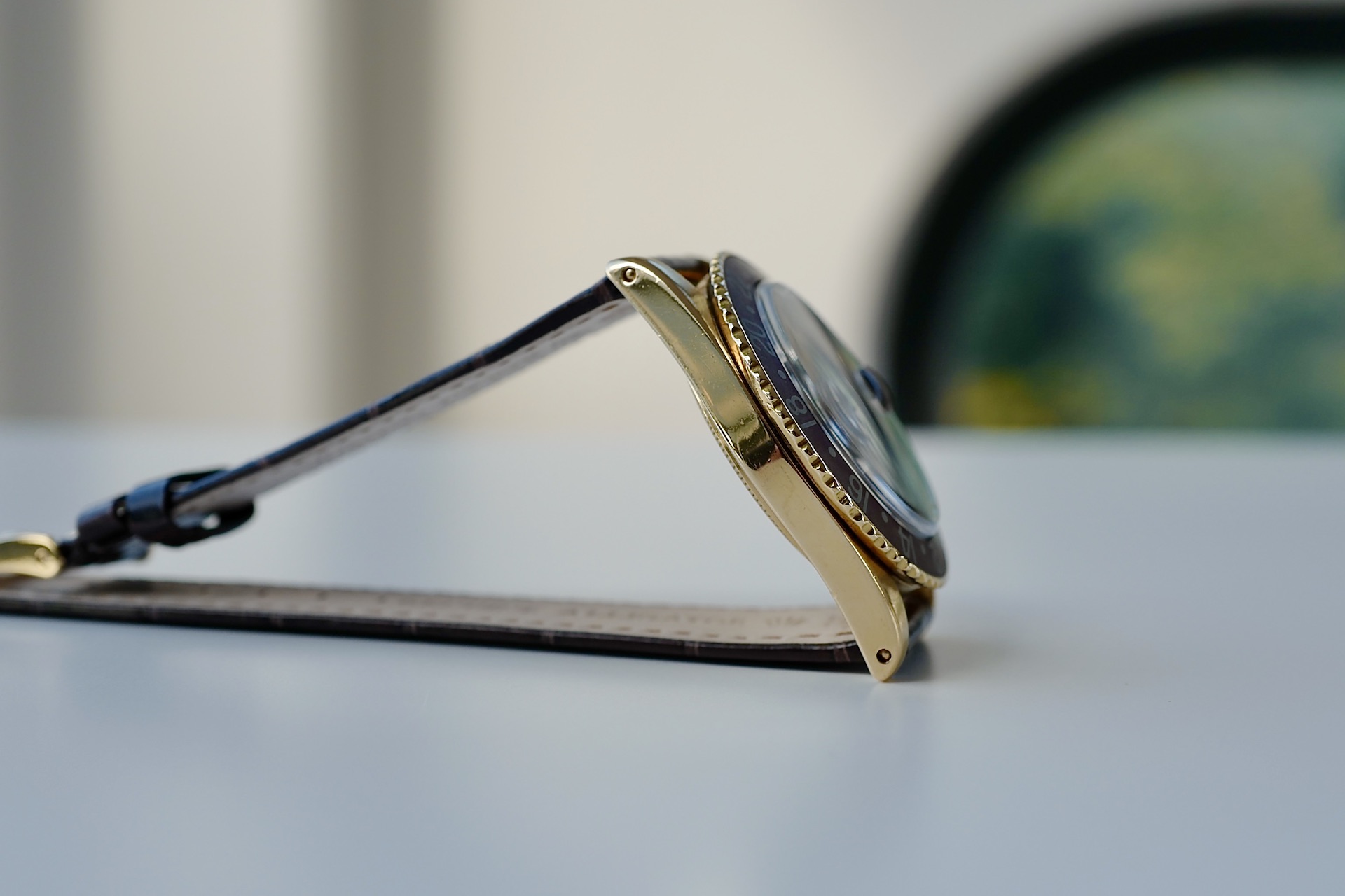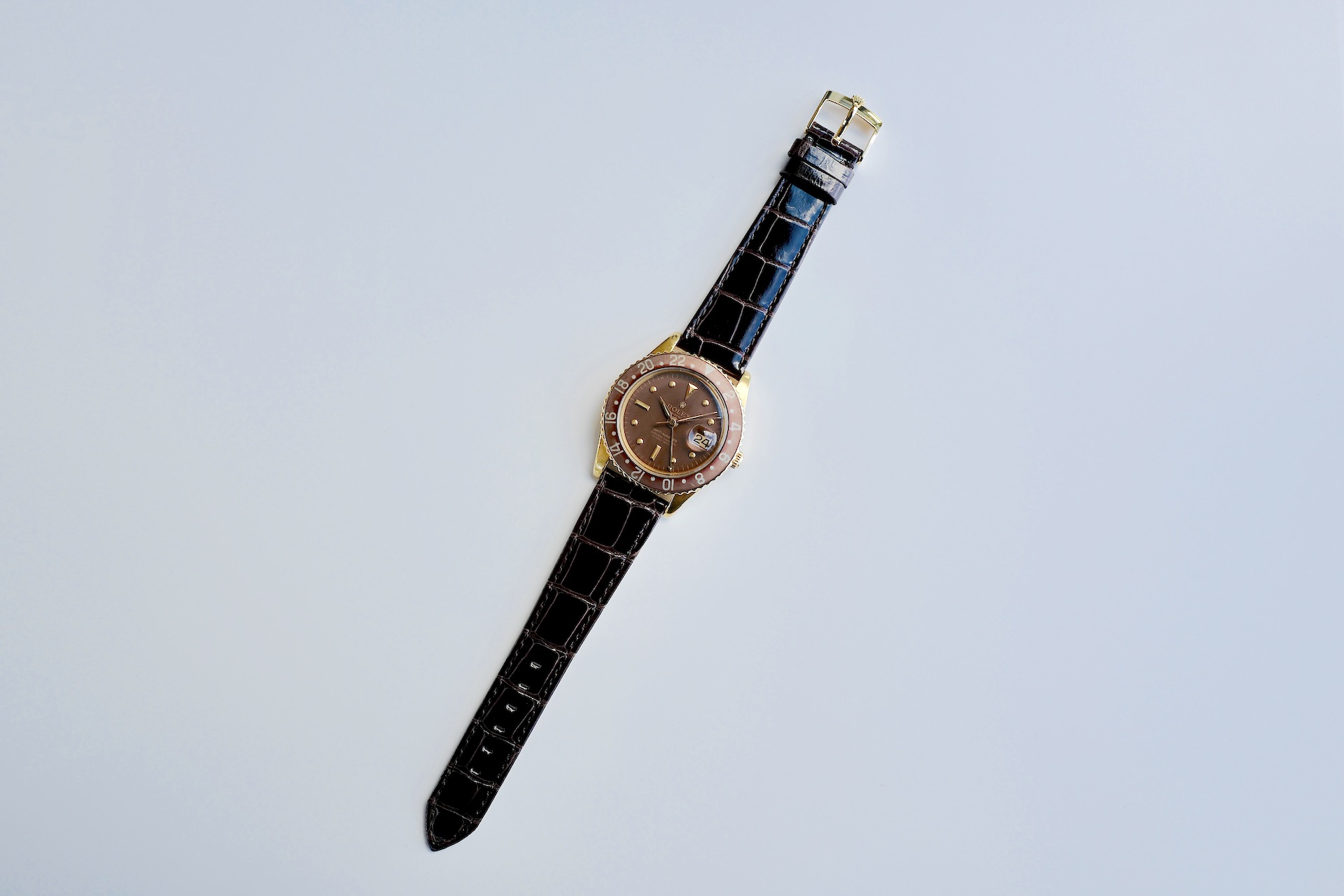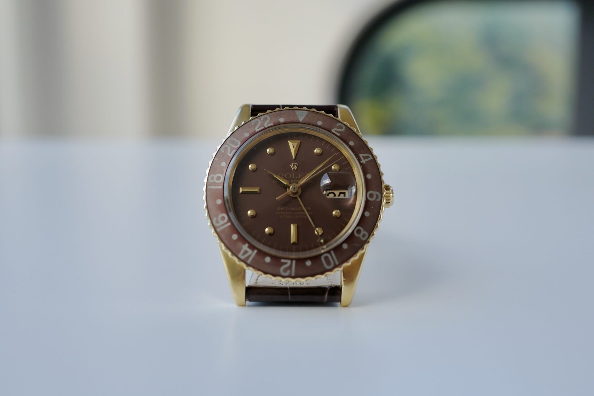 非常に希少な1675/8のリューズガード無しのモデル。この1675の金無垢ガード無しを仕入れるにあたり、様々な資料及びオークションのリザルト、ディテールと価値等の分析を行いました。