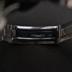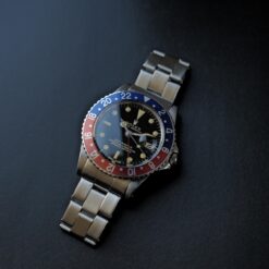 We have a shiny, glossy 1675 gilt dial in stock. It’s the final mirror finish, known as Wide Swiss, with a large SWISS inscription. The slightly faded original eight-couple bezel insert adds a touch of refinement. This is a truly sophisticated watch. The case is also exceptional, with US rivets dating back to 1965.