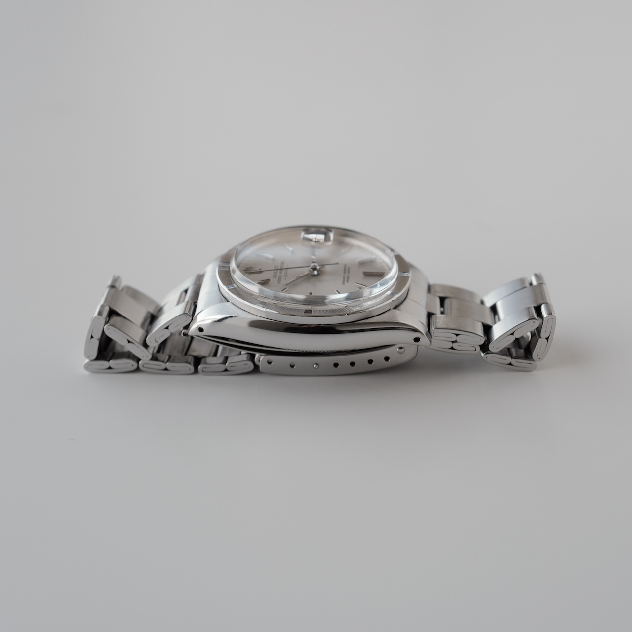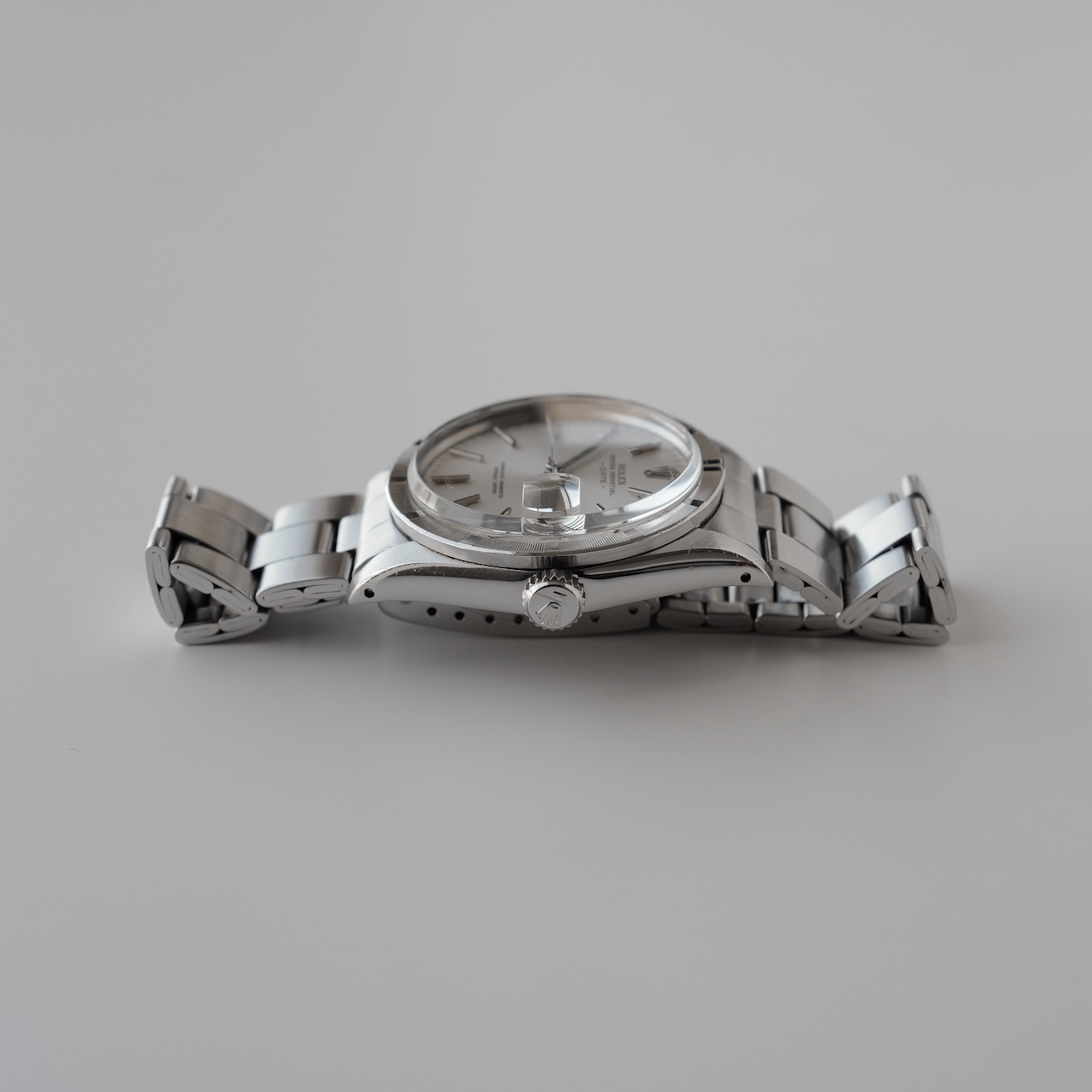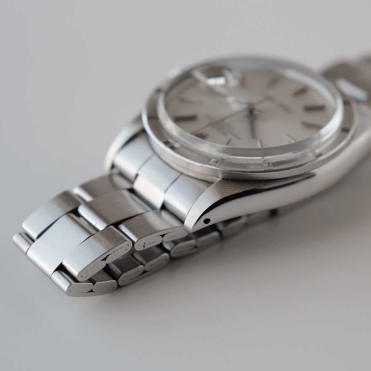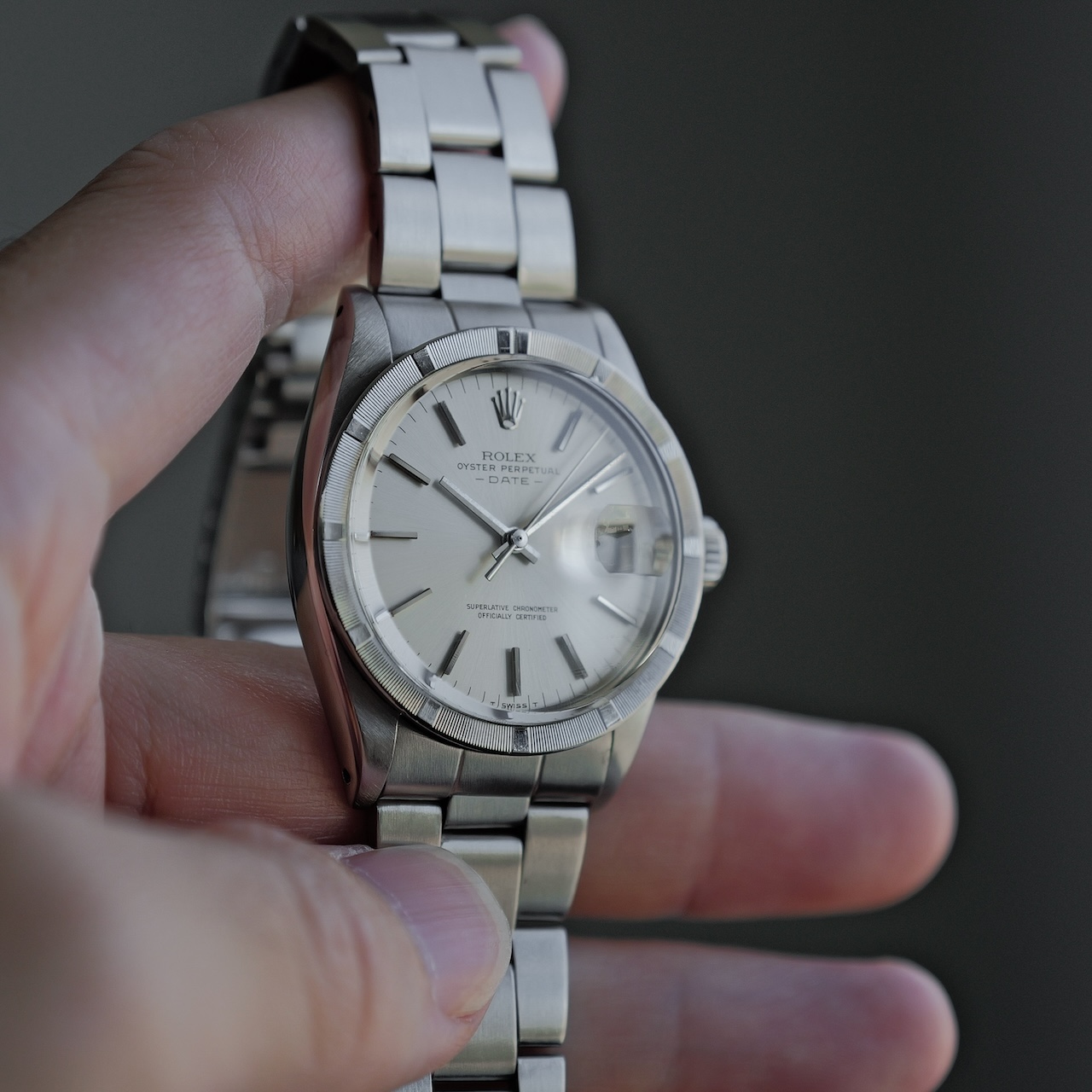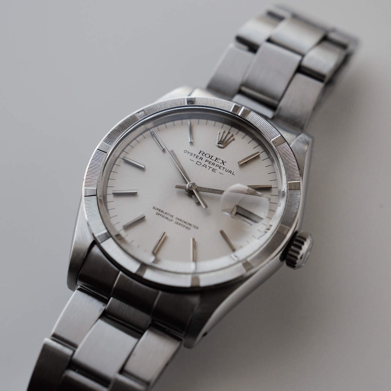 個人的にこのエンジンターンドベゼルという響きが好きで、いつも気にしている1本ですが、中々良い個体が無い…黒文字盤が好きだけどシルバーダイヤルもシンプルで捨てがたいし、何より黒に比べて値段が半分くらいなのが嬉しい。殆ど使用感が無いので、巻きブレスの状態も伸びがなくて気持ちいい!そんなコスパの高い1本です。