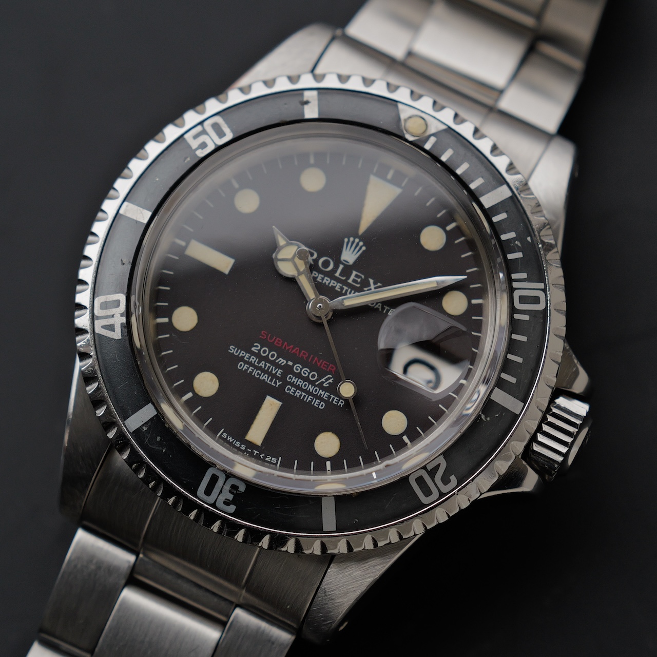 RED SUBMARINER 1680 MK.3 “TROPICAL DIAL” & GHOST BEZEL 1970Y. The tropical Mark 3 with red Submariner and ghost bezel is now in stock. The Submariner is a watch to watch in 2025. It is rare to find such a highly original and rare model. The Mark 3 dial with a light brown aging and the meter-first dial are the best. The included double lock bracelet is also a nice touch.