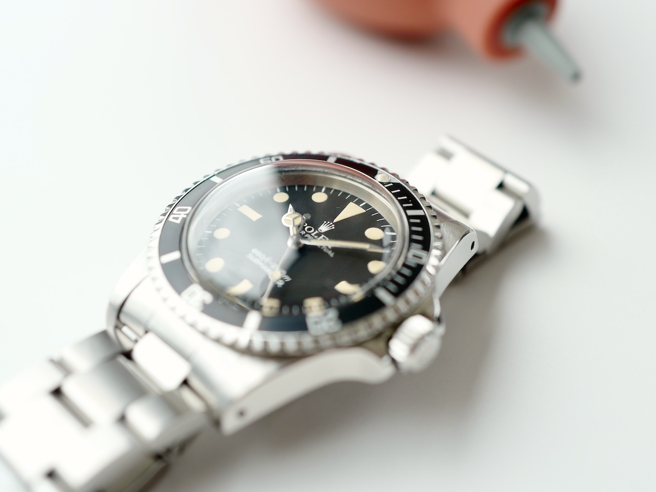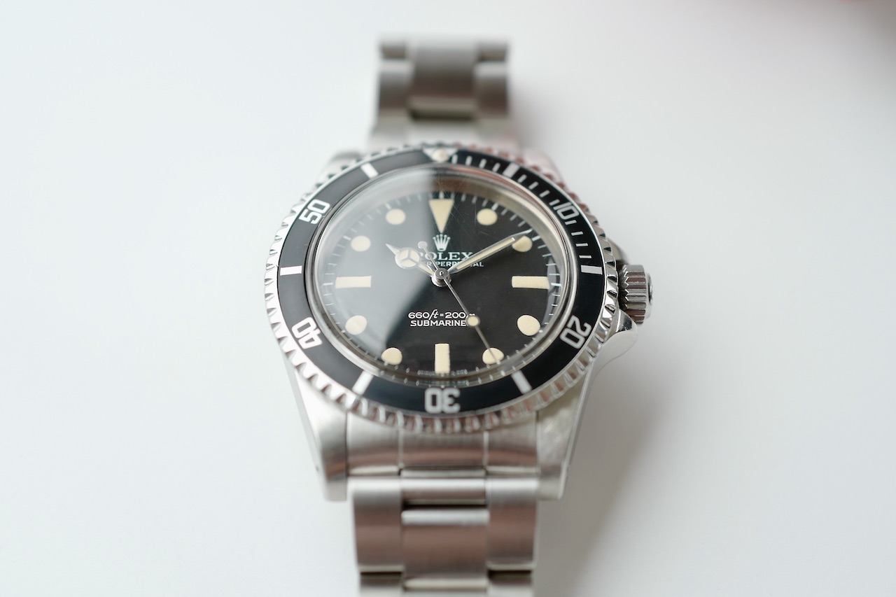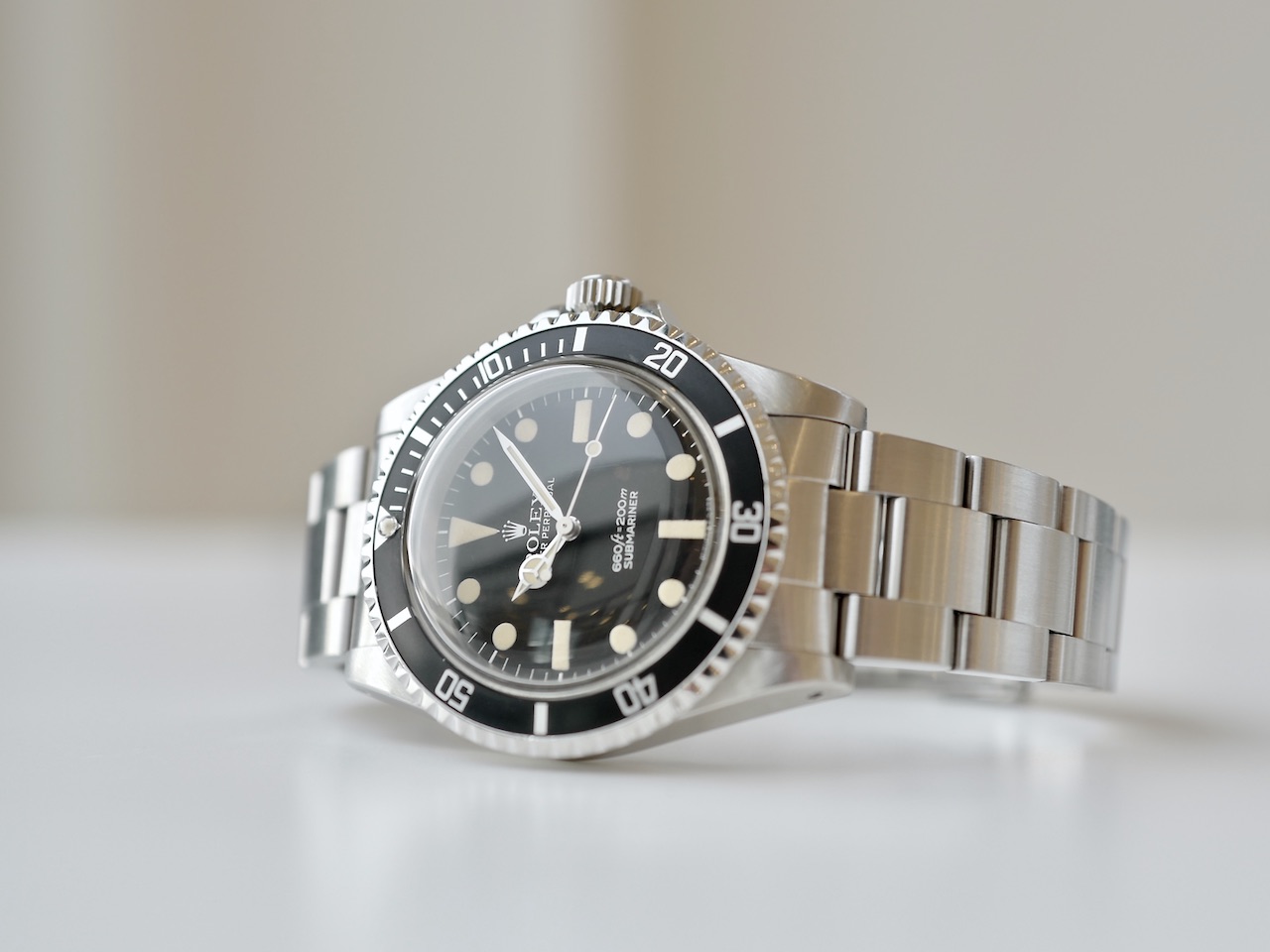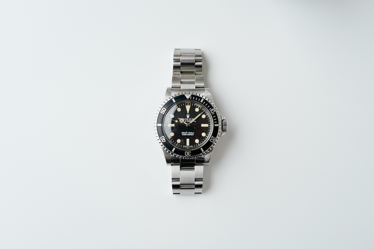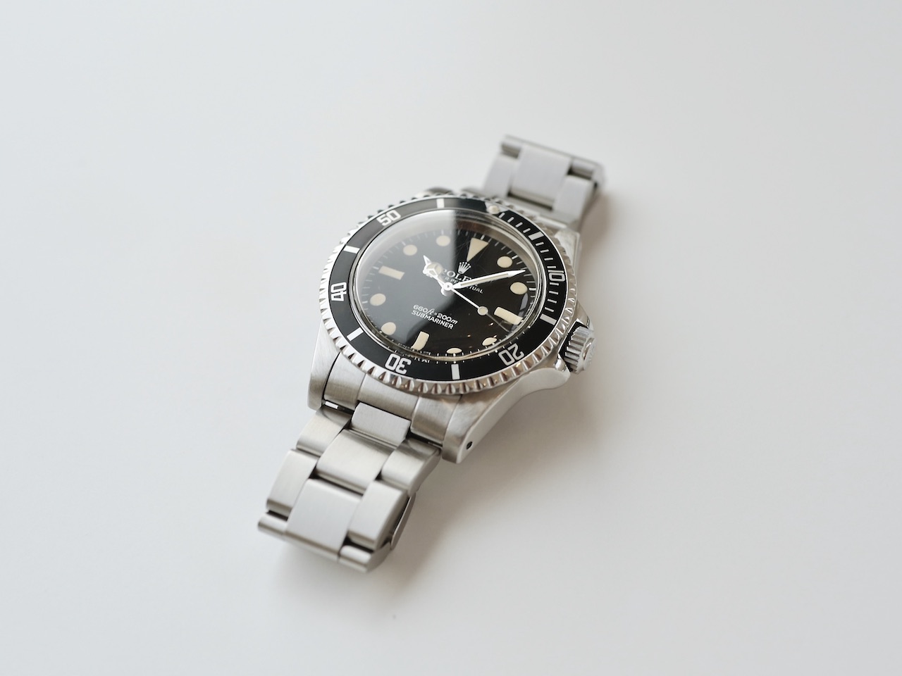 バキっとしたサブマリーナ5513マキシダイヤルの入荷。マーク1なので77年後期くらいから79年前半くらいまでかな、確か。わずか1年くらいの生産。77年はPre-COMEXダイヤルの年でもあるので、ロレックスの当たり年かも。たまにプレコメックスダイヤルと混同される場合もありますが、こちらはマーク1です。プレコメックスもドットが大きくマキシに分類される事もありますが、その際はマーク0と言われています。